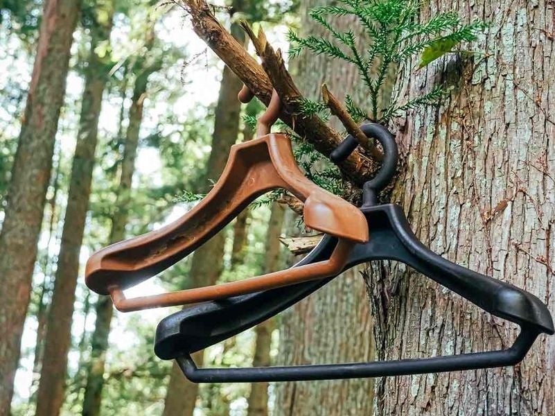 天竜材を使った100%バイオマスハンガー。着色は一切しておらず、素材の色そのもの。