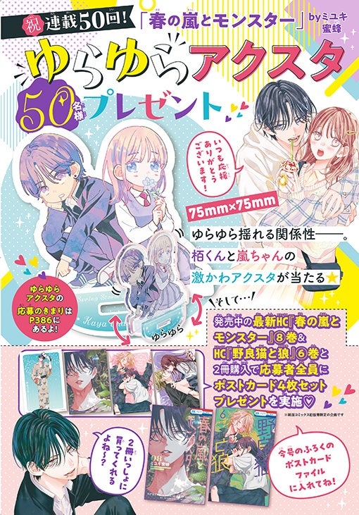 今号超豪華Wふろく!「『春の嵐とモンスター』×『野良猫と狼』ポストカードファイル byミユキ蜜蜂」&「『春の嵐とモンスター』沼るポストカード byミユキ蜜蜂」です!