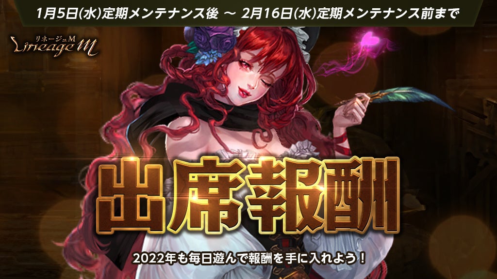 PCオンラインRPG「リネージュ」のモバイル版タイトル『Lineage M(以下、リネージュM)』のサービス、運営をしているエヌ・シー・ジャパン株式会社(東京都港区、代表取締役:金 澤憲(キム テクホン) 以下、エヌシージャパン)は、2022年1月5日にイベント「新春 勇者の初夢」の開催および「出席報酬」の更新に加え、様々なパッケージ商品の販売をお知らせします。
