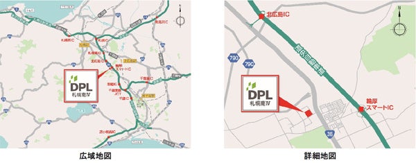 「DPL札幌南Ⅳ」は、道央自動車道「輪厚スマートインターチェンジ」「北広島スマートインターチェンジ」から5km以内と近接していることに加え、札幌市街地からも約22kmと、降雪のある北海道でも、市街地への安定した配送が可能なエリアに位置しています。また、国道36号線にも至近した立地のため、道内の主要拠点へのアクセスにも優れています。