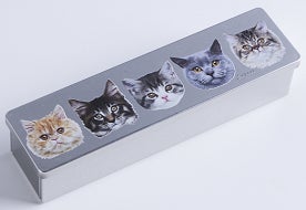 ネコちゃん5匹が見つめる缶には、眼鏡がぴったり!他にも東京スマイルチャージには缶マニア要チェックの缶スイーツがたくさんそろっています。