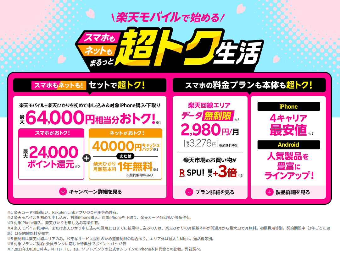 キャンペーン詳細:https://network.mobile.rakuten.co.jp/hikari/campaign/iphone/cash-back/