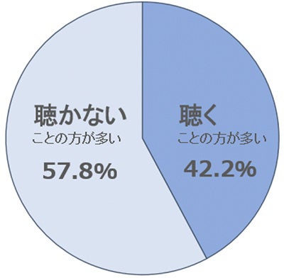高校生活といえば切っても切り離せないのが勉強。そこで、勉強中に音楽を聴いているのか聞くと、「聴かないことの方が多い」と回答した人が57.8%と多数派に。理由は、好きな曲が流れていると乗ってしまい集中できないという人が多く、勉強後のご褒美にしているというコメントが多々見られました。また、集中できるまで聴いて集中し始めたら消すという人も。