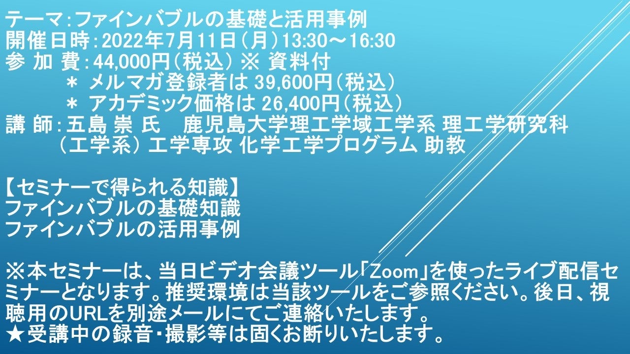 ※本セミナーは、当日ビデオ会議ツール「Zoom」を使ったライブ配信セミナーとなります。推奨環境は当該ツールをご参照ください。後日、視聴用のURLを別途メールにてご連絡いたします。