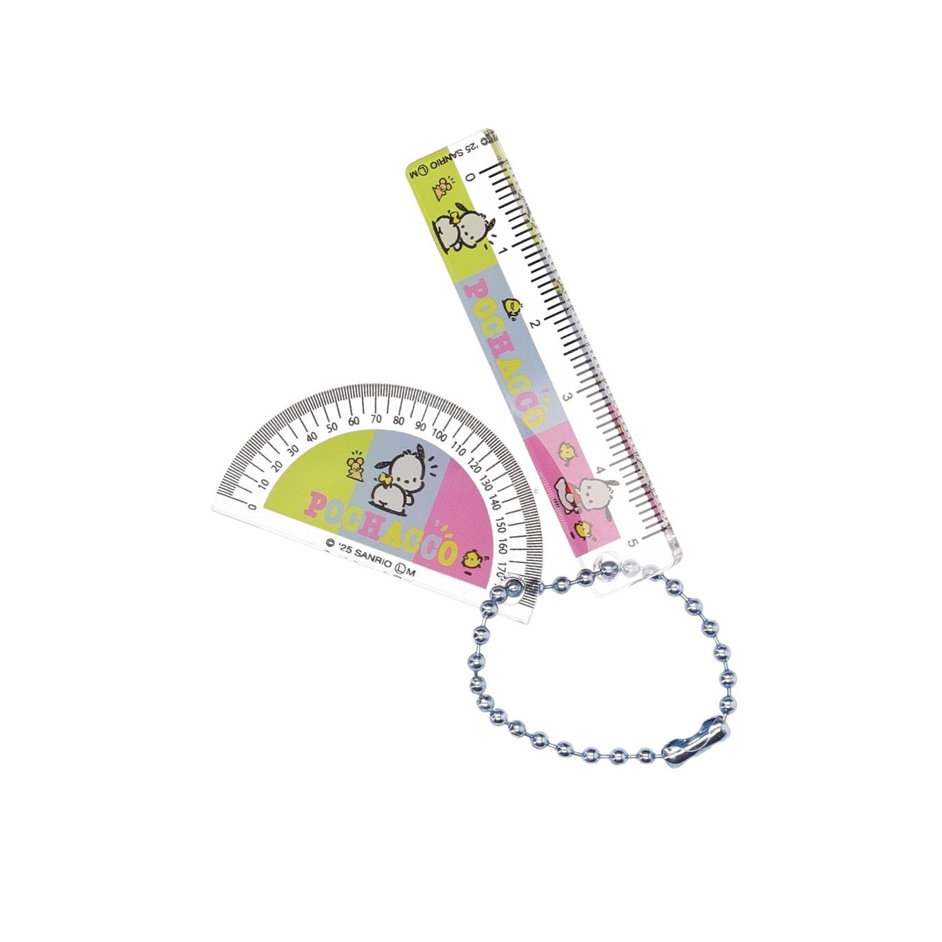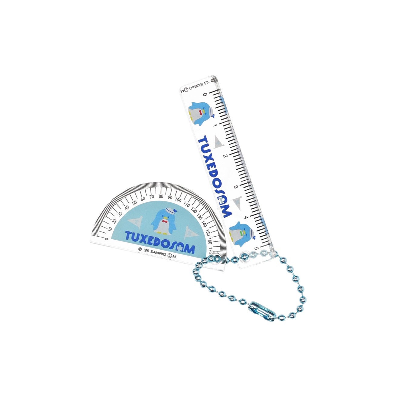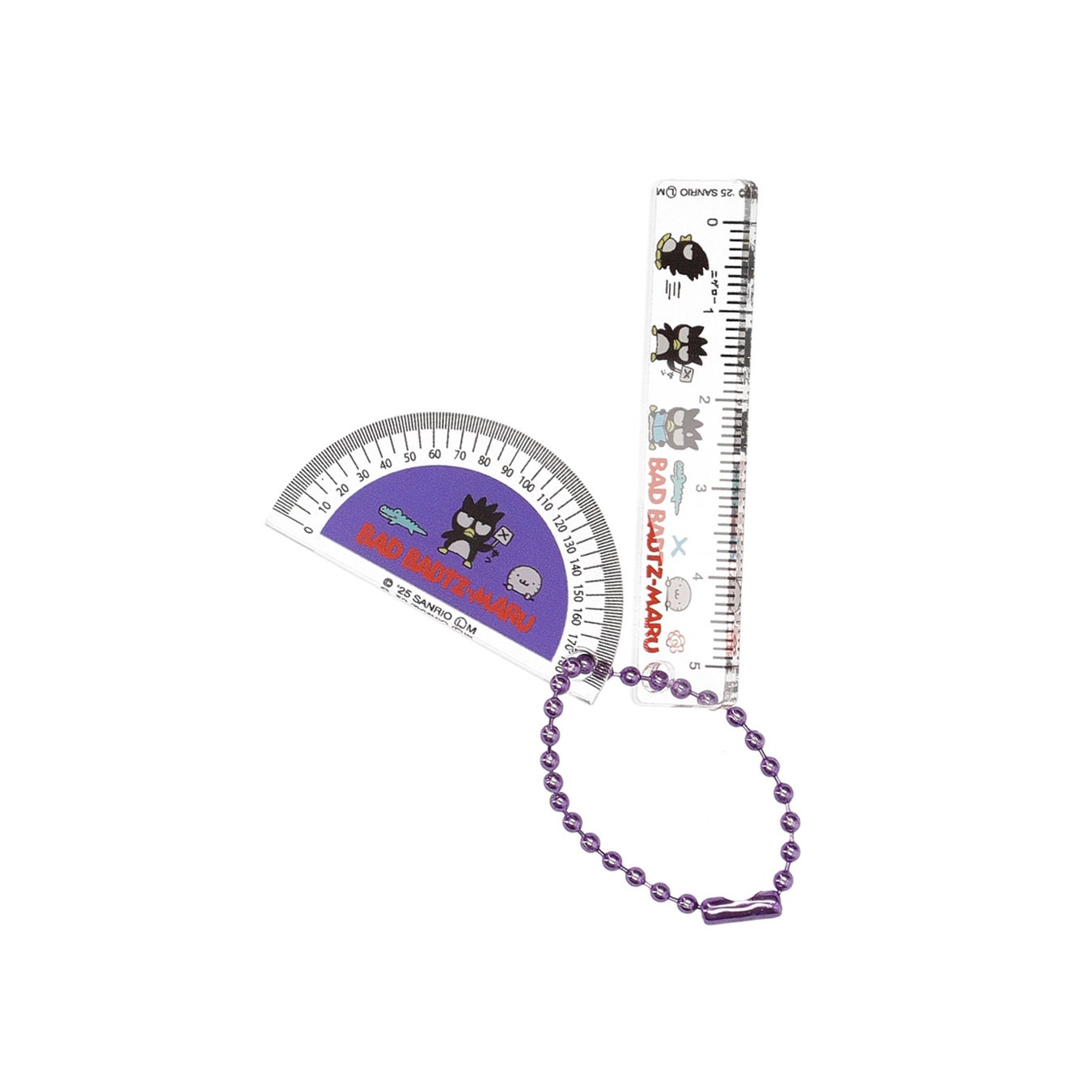 透明のアクリル素材でリアルな質感を表現し、定規は実際に線を引く際に活用できます。お好きなキャラクターをバッグやポーチに付けて楽しむのはもちろん、複数集めてハローキティの分度器とマイメロディの定規、タキシードサムの分度器とバッドばつ丸の定規など、組み合わせを変更して自分だけのキーホルダーにするのもおすすめです。