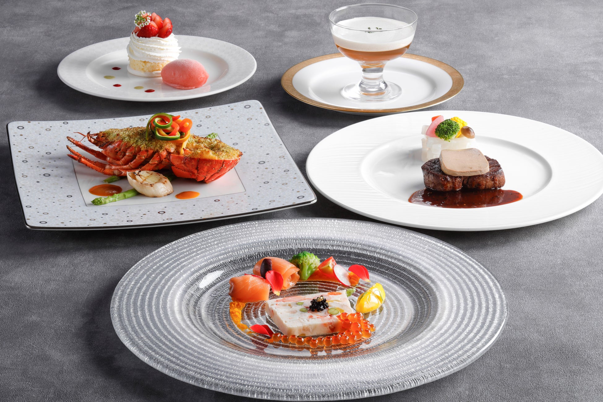 2025年10月3日(金)にホテル開業40周年を迎えることを記念し、ホテル開業当初に婚礼メニューなどで提供してきた伝統料理を再現し、期間限定でご用意します。フランスの古典的な料理「オマール海老のテルミドール」や肉料理の最高峰「牛フィレ肉ステーキロッシーニ風」など、懐かしいメニューをフルコースで提供します。お飲み物はビール、ワイン、焼酎、ウイスキー、カクテルなどの中から4種類をお選びいただき、フリーフローでお楽しみいただきます。