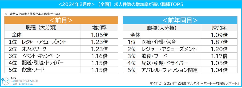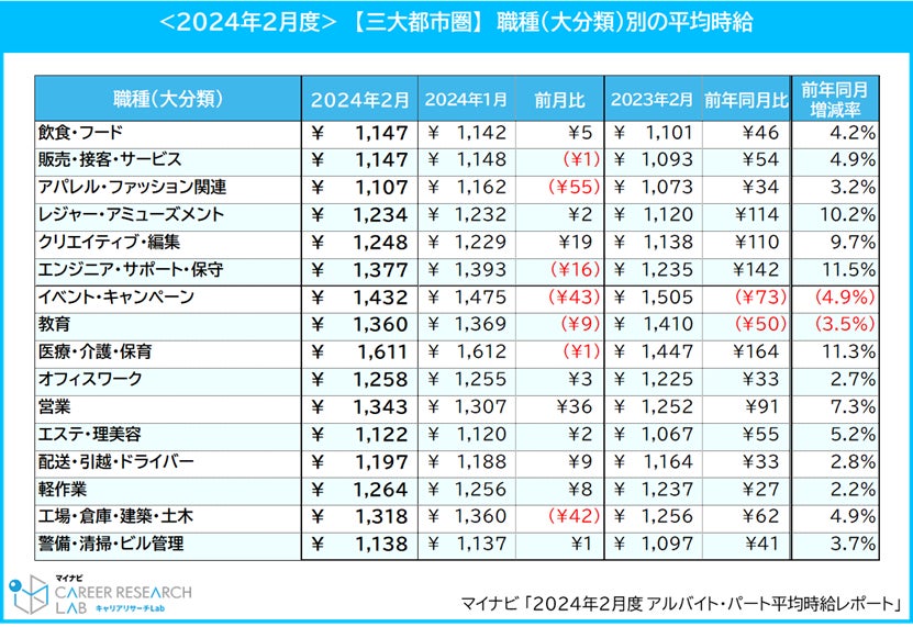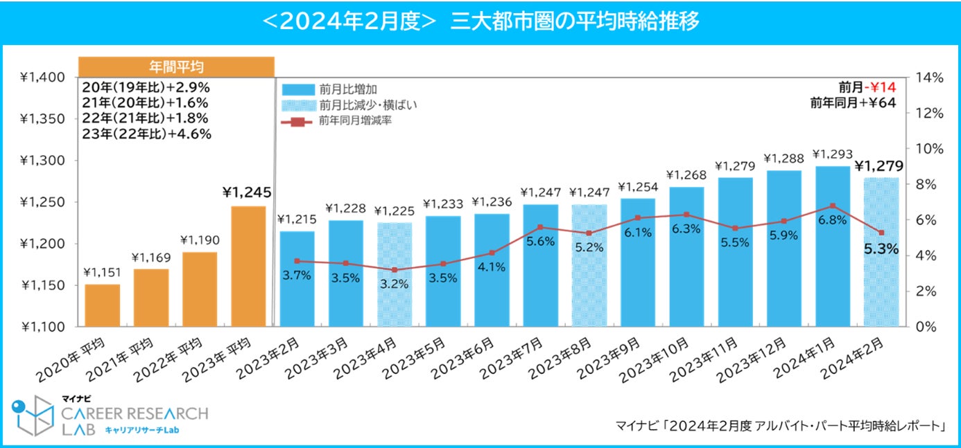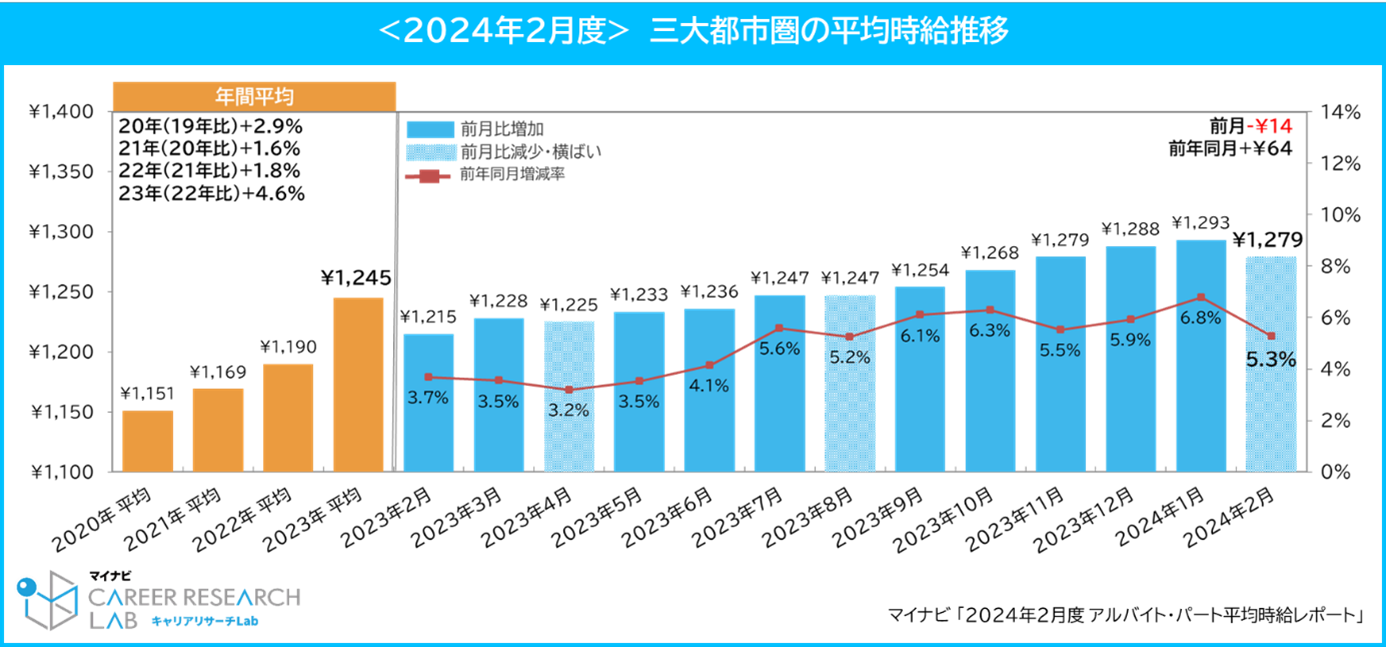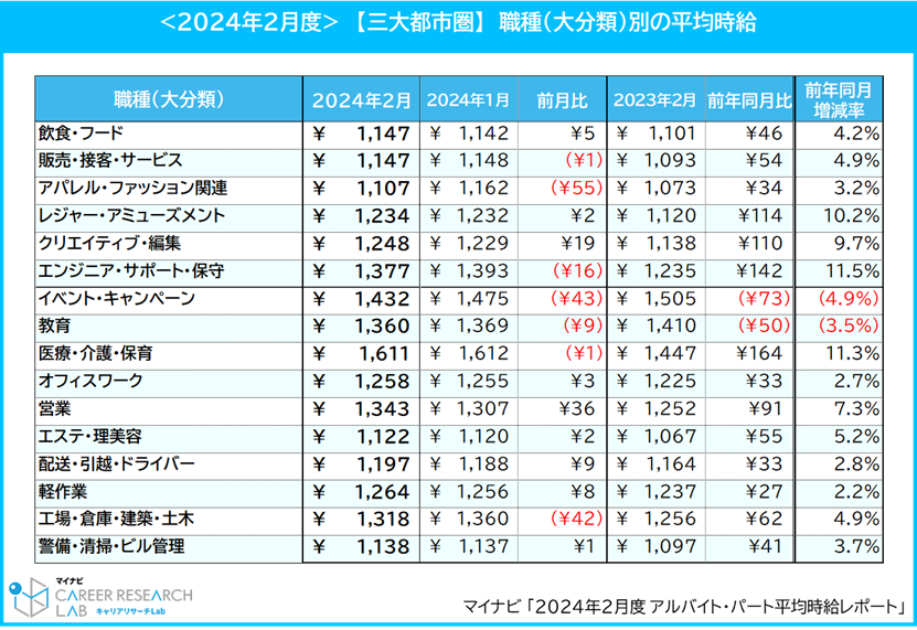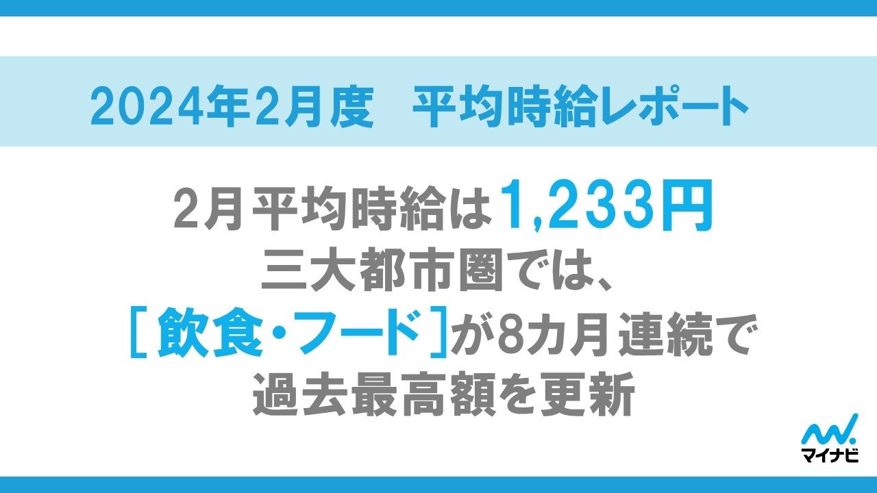 マイナビ、「2024年2月度アルバイト・パート平均時給レポート」を発表