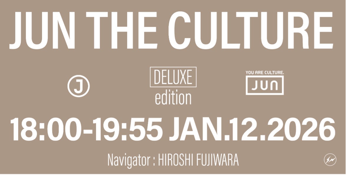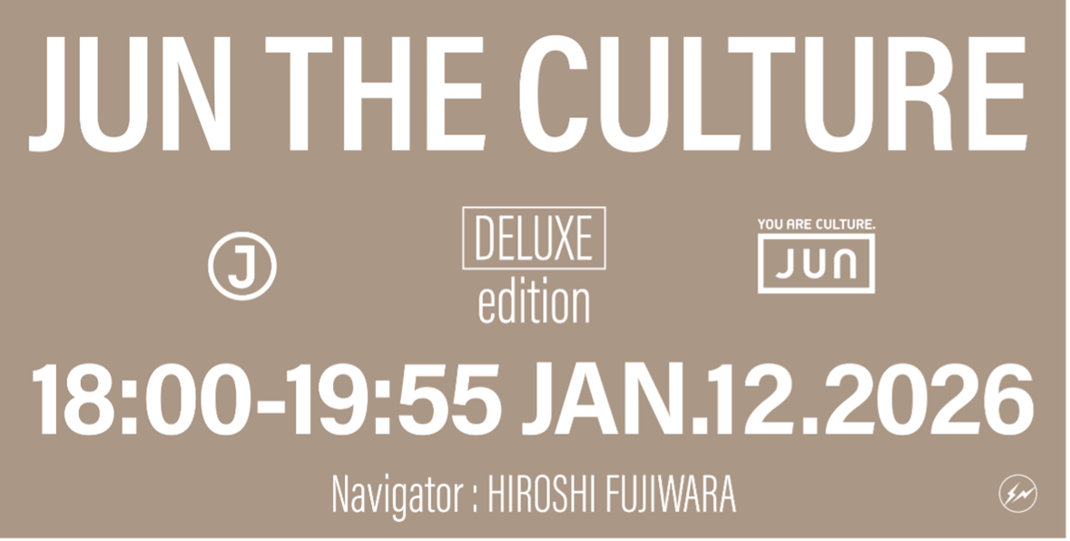 J-WAVE(81.3FM)では、クリエイター・藤原ヒロシのナビゲートで毎週土曜日13:30-13:50に「JUN THE CULTURE」を放送中です。成人の日の祝日である2026年1月12日(月・祝)18:00~19:55に、同番組の特別版『J-WAVE SPECIAL JUN THE CULTURE DELUXE EDITION』を放送いたします。