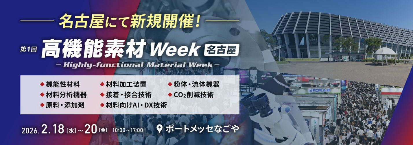 RX Japan合同会社(本社:東京都中央区、代表執行役員社長:田中岳志)は、2026年2月18日(水) - 20日(金)の期間、ポートメッセなごやにて 第1回 高機能素材Week [名古屋] を開催します。