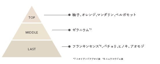 柚子を基調に、ゼラニウム*7やパチョリ、オレンジ、ベルガモット、