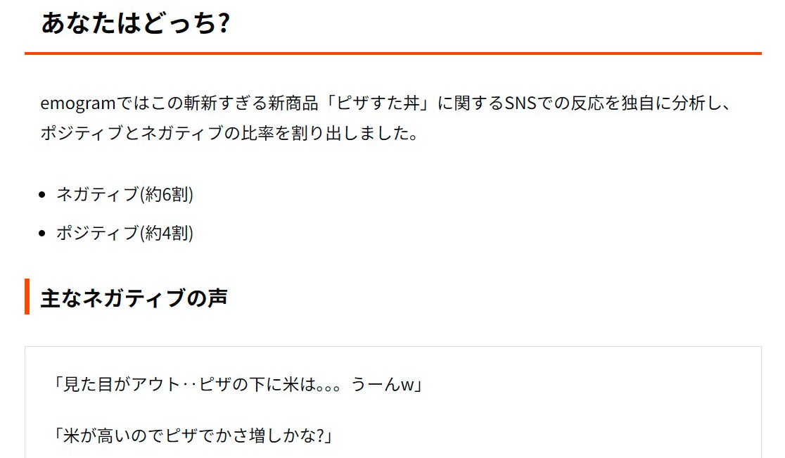 最大の特徴は、ニュースや話題に対するSNSやネット上の反応を「喜怒哀楽」や「ポジティブ・ネガティブ」に分けて解析し、発信することです。こうした特徴を持つメディアであることから名称を「emotion(感情)」と「gram(記録)」を組み合わせた「emogram(エモグラム)」としました。リアルタイム、かつ深い視点で最新のトレンド情報をお楽しみいただけます。