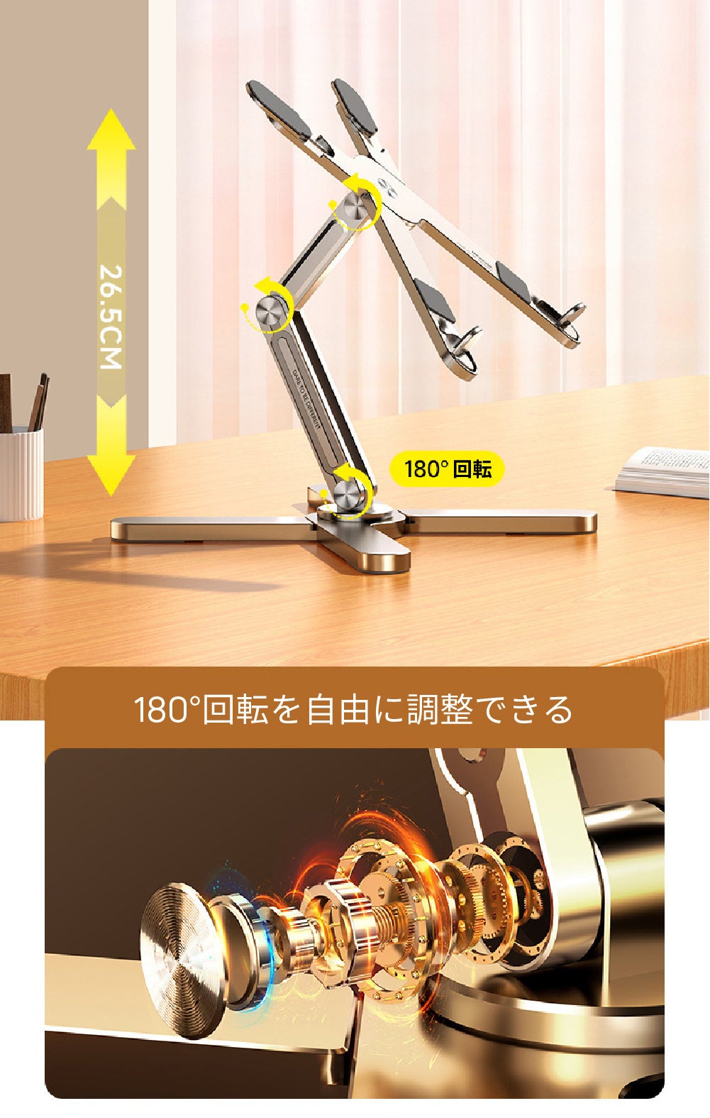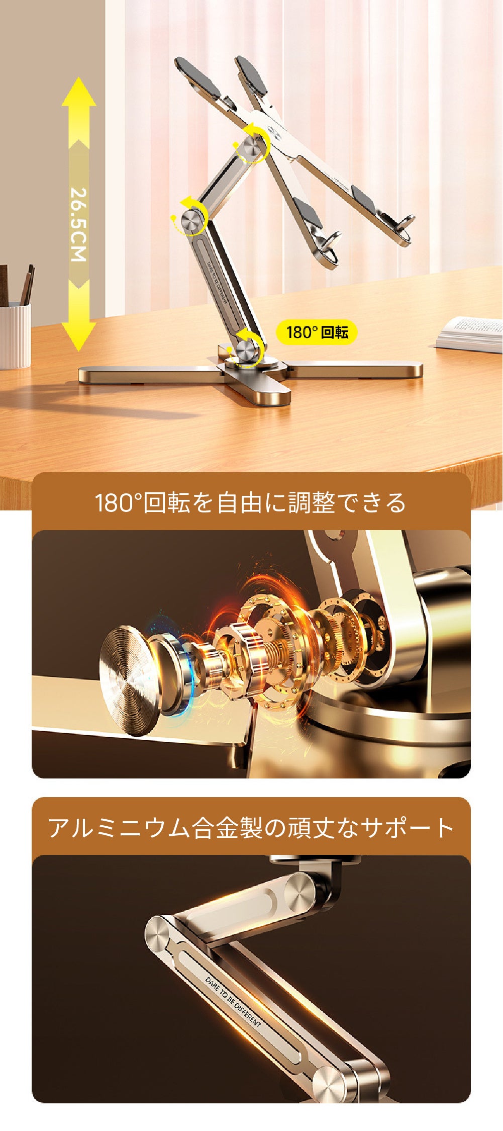 【16インチ以下のPC・タブレットに対応/40~265mm高さ調整可能/360°全周回転】
