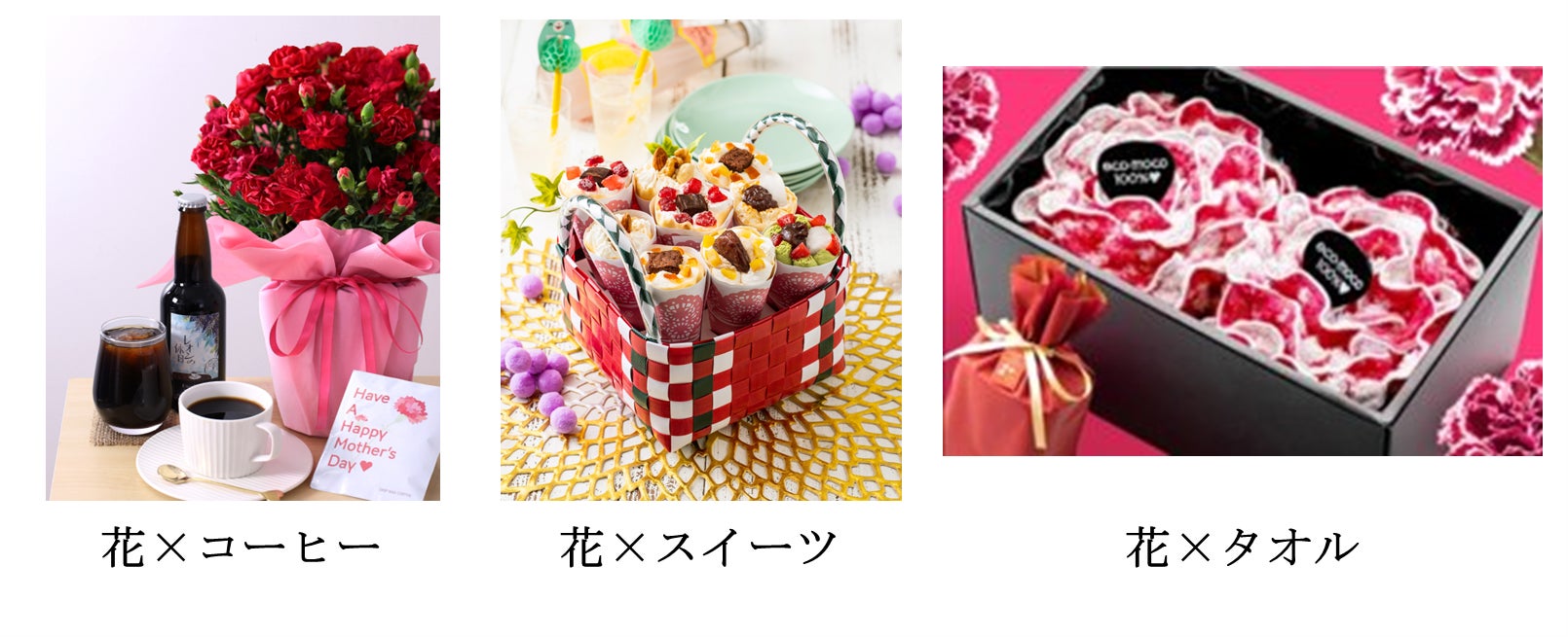 「楽天市場」では、コーヒーやスイーツとお花のセット商品や、花束に見立てたタオルやソープフラワーなど、セット商品の人気がじわじわと高まっており、今年の母の日の「新定番フラワーギフト」として需要が高まることを予測しています。