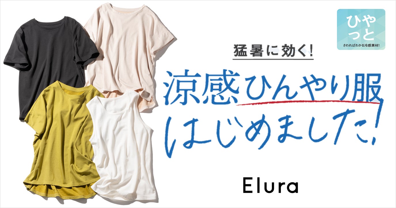 「大人の悩みに効く服」Eluraが展開する“猛烈な夏の暑さに効く“<ひやっとタッチTシャツシリーズ>が好調につき追加販売決定!
