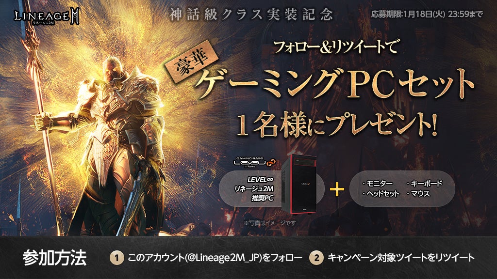 ●リネージュ2M 神話級クラス実装記念 フォロー&RTキャンペーン(ゲーミングPCセットプレゼント)