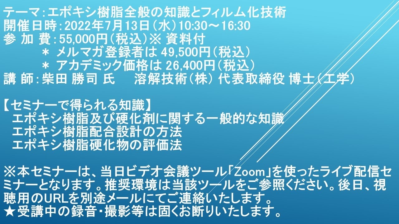 【ライブ配信セミナー】エポキシ樹脂全般の知識とフィルム化技術 7月13日(水)開催 主催:(株)シーエムシー・リサーチ