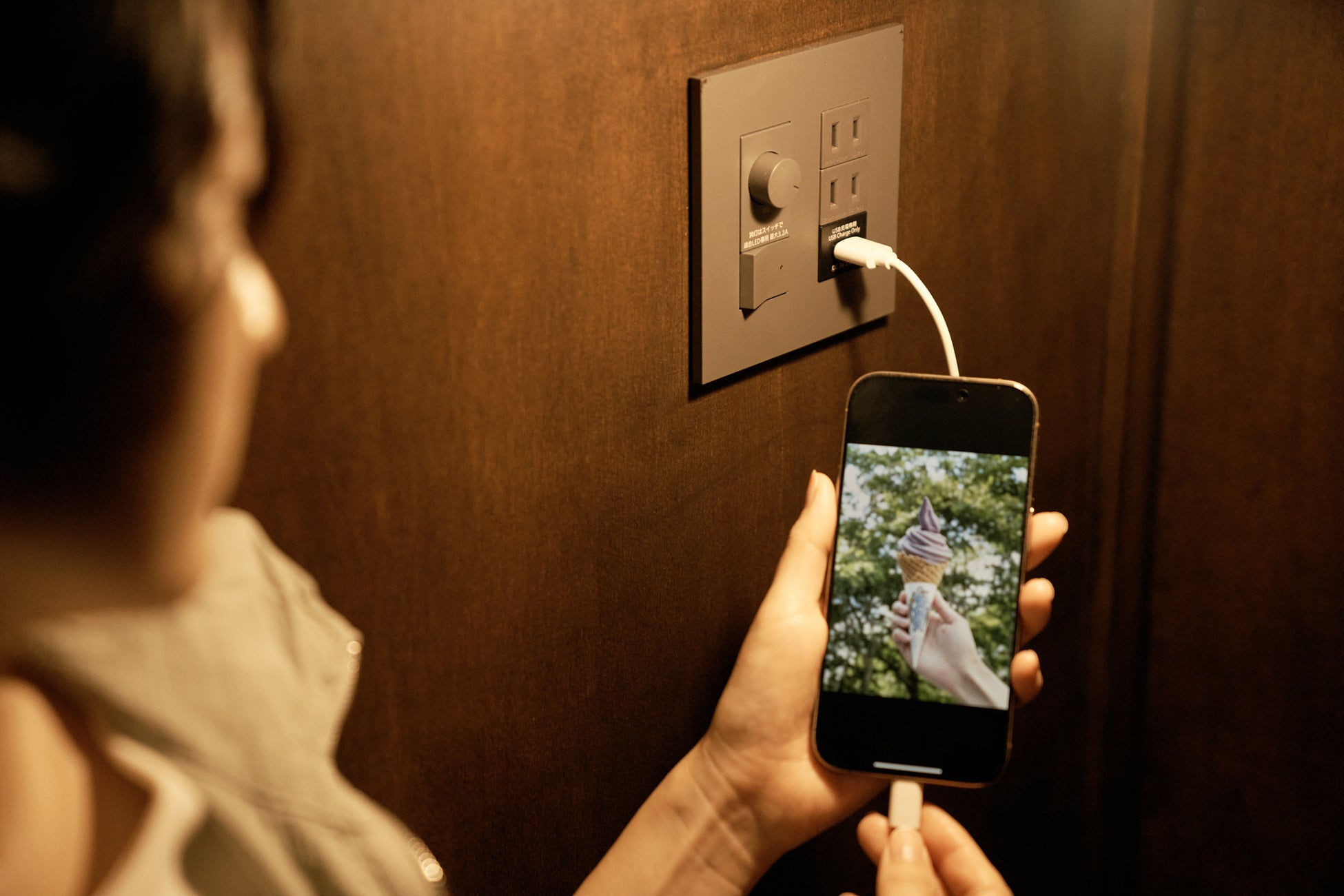 ラウンジから客室のベッドサイドまで、館内の至るところに電源やUSBポート、Wi-Fiを完備。通信環境や充電の心配なくお過ごしいただけます。