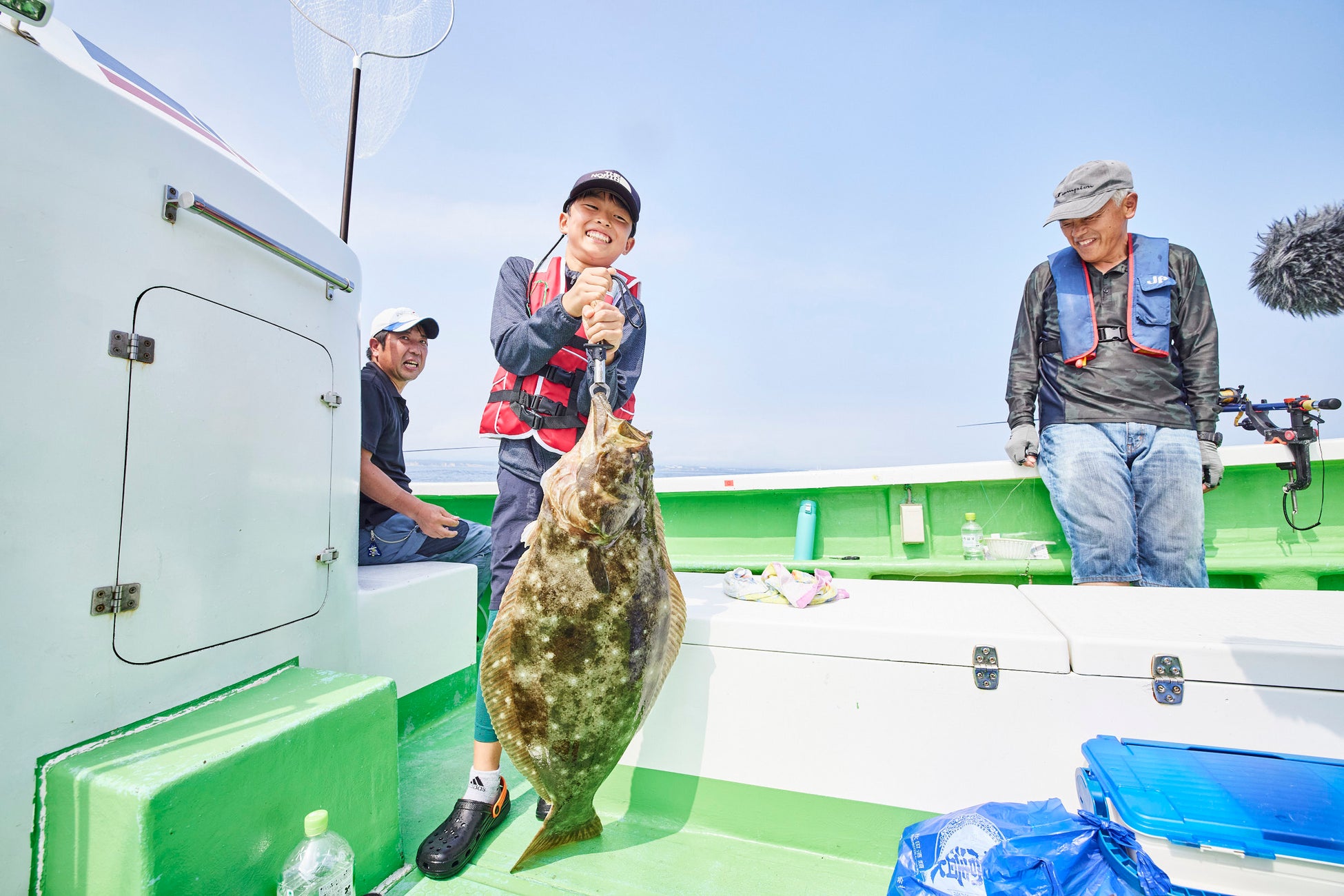 ①船釣り体験で、ヒラメなどの〝常磐もの〟を釣る