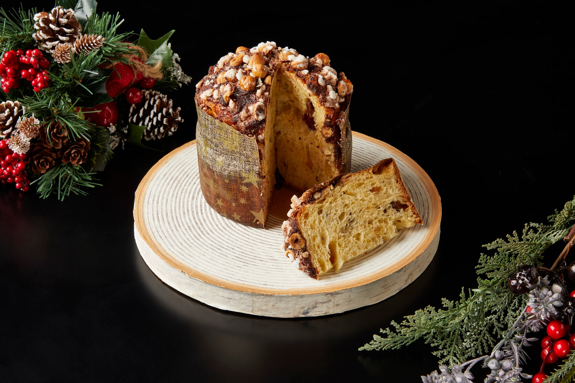 イタリアの家庭ではクリスマスシーズンに欠かせないパネトーネ。ザ・リッツ・カールトン東京では、天然酵母、卵、バターを使用し、レーズン、天草みかんの皮、レモンピール、ドライクランベリーを練り込み、ココアマカロンドウとヘーゼルナッツをトッピングし焼き上げました。