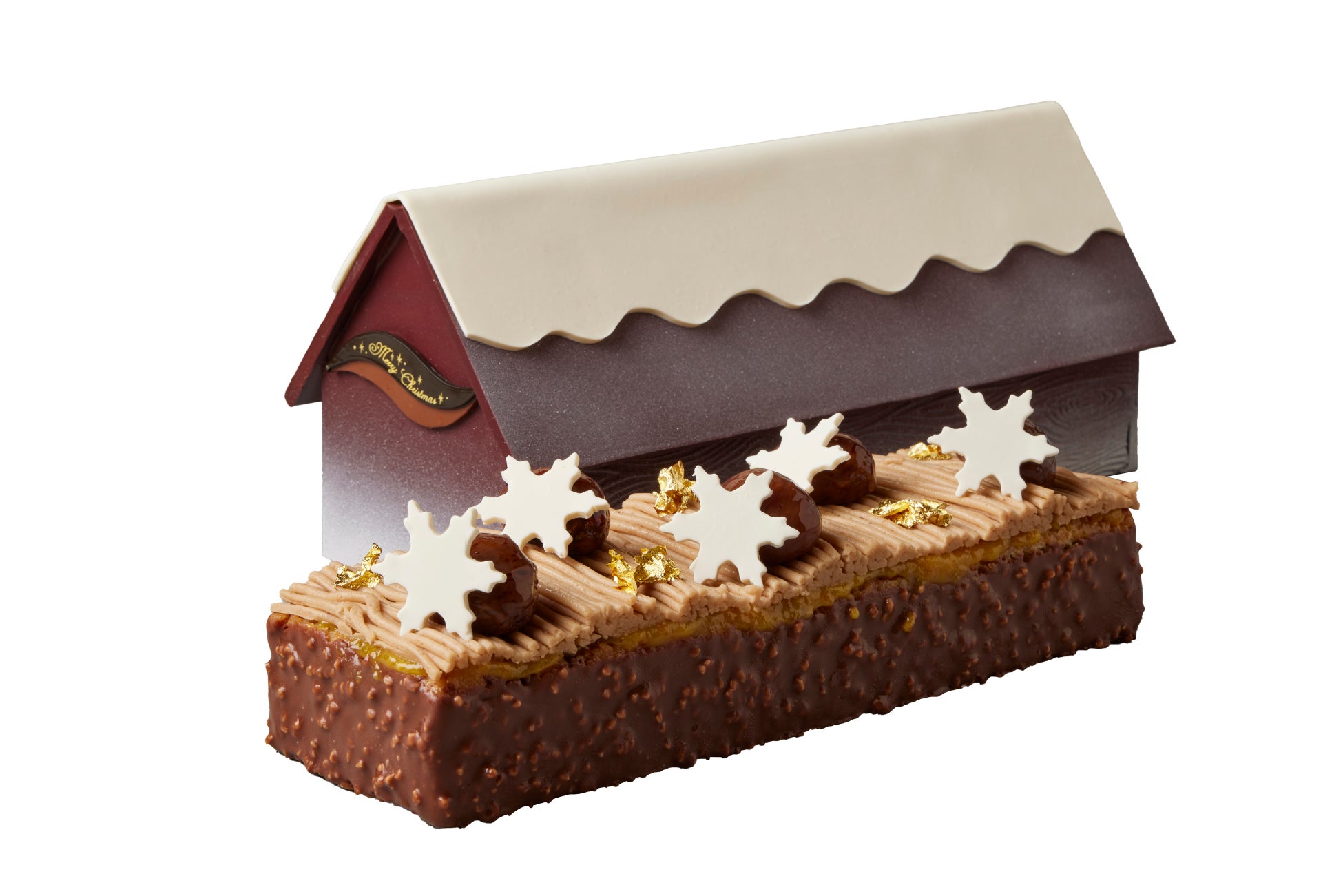 毎年、そのユニークなデザインが話題を呼ぶ数量限定ケーキの今年のモチーフは、マレーシアの伝統的家屋「ロングハウス」。家族や大切な方々と過ごすクリスマスの和やかな雰囲気を「お菓子の家」として表現しました。チョコレートで形成した「お菓子の家」の中には、しっとりとした栗のケーキを合わせ、柑橘の風味と、ほのかな甘さ、酸味が調和した一品で、ホリデーシーズンの主役としてふさわしい仕上がりになっています。