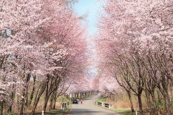 どこまでも続くような迫力と美しさを備えた絶景の桜並木。地元の方が「世界一の桜並木に」という思いで10年の歳月をかけ、約20㎞にわたり約6,500本のオオヤマザクラを植樹。鮮やかな新緑と紅色のコントラストが美しく、地元でも愛されるスポットに。