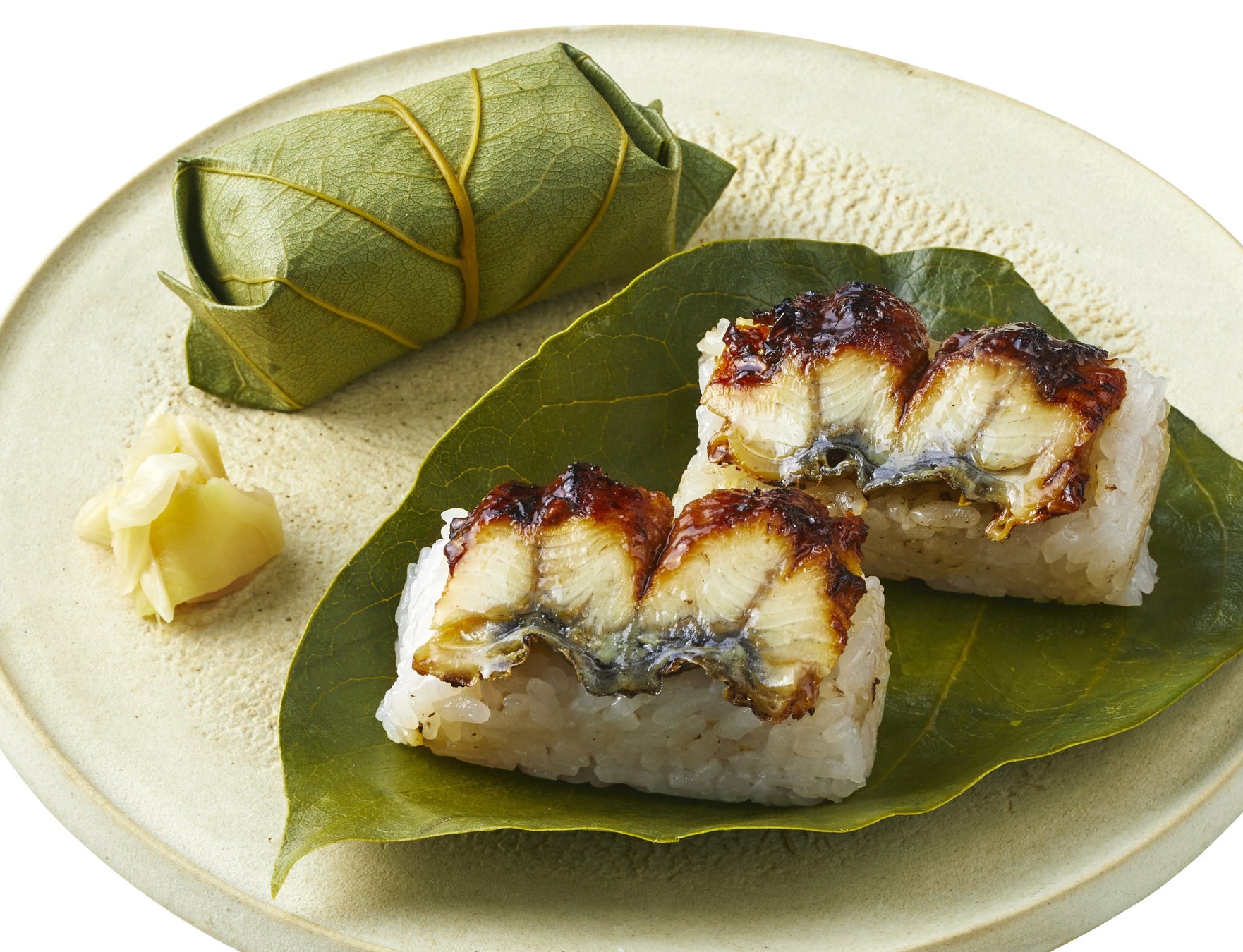 大阪・堺「五郎藤」の国産鰻とバターを使った柿の葉寿司。濃厚かつまろやかな味わいが特徴です。