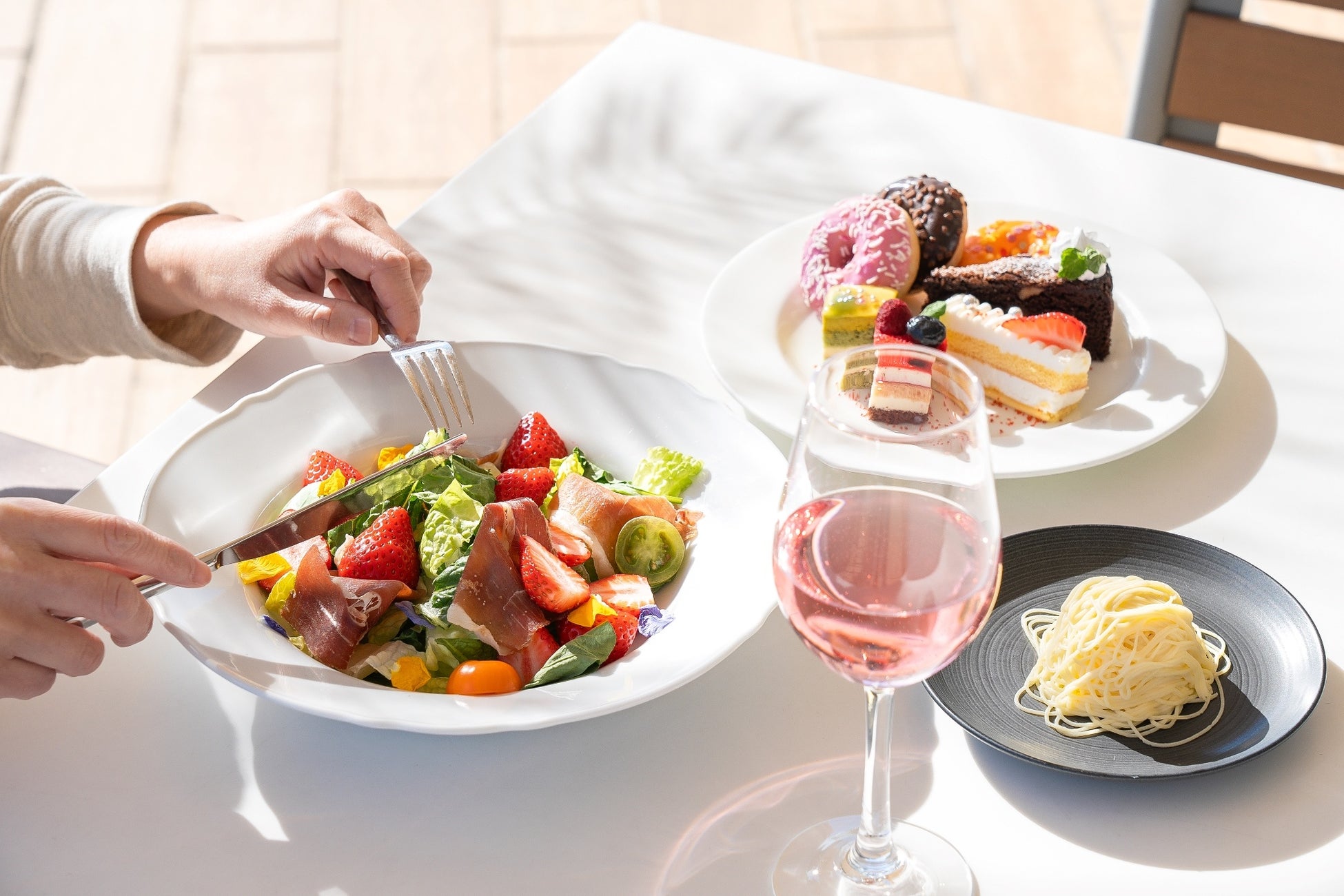 【神戸メリケンパークオリエンタルホテル】海を望むテラスで旬の『いちご』と『ロゼスパークリング』を楽しむ春ランチ“Seaside Spring Terrace”
