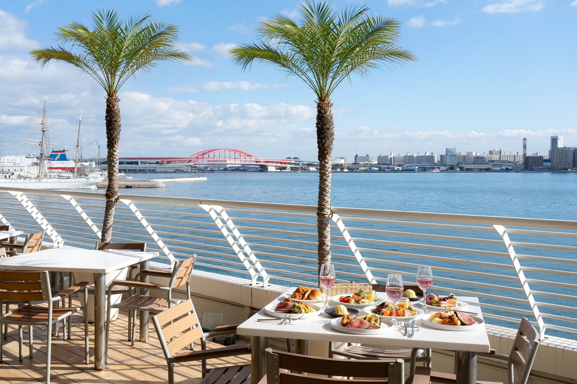 神戸メリケンパークオリエンタルホテルでは、Terrace&Dining「ALL FLAGS(オールフラッグ)」にて、水平線を望み、潮風を感じるテラス席で、お料理とロゼスパークリングワインをお楽しみいただけるランチタイム限定プラン「Seaside Spring Terrace」を、2026年1月6日(火)より販売いたします。