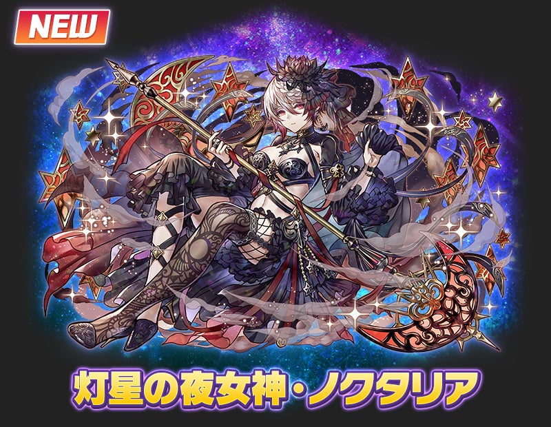 新たに「灯星の夜女神・ノクタリア」「白霹竜・ノヴァ」「始祖の鬼龍契士・クロトビ」「聖都の魔導機士・メノア」などがラインナップするコラボガチャが登場します。
