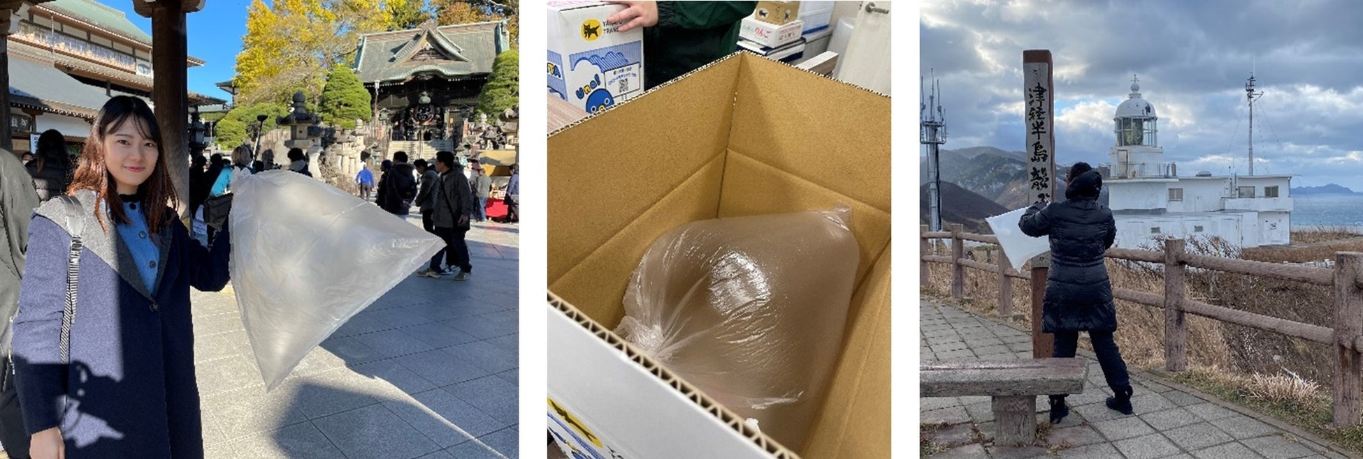 元となる空気は、もちろん今回も「テレ東系 旅の日」第2弾のロケ中に番組スタッフがその場で採取。場所はスタート地の千葉県・成田山新勝寺からゴールの青森県・龍飛崎まで、多岐にわたります。緊張感でいっぱいな空気、極寒の中で採取した空気など、リアルタイムで採取したロケ現場の新鮮な空気を、ぜひご鑑賞・ご賞味ください!