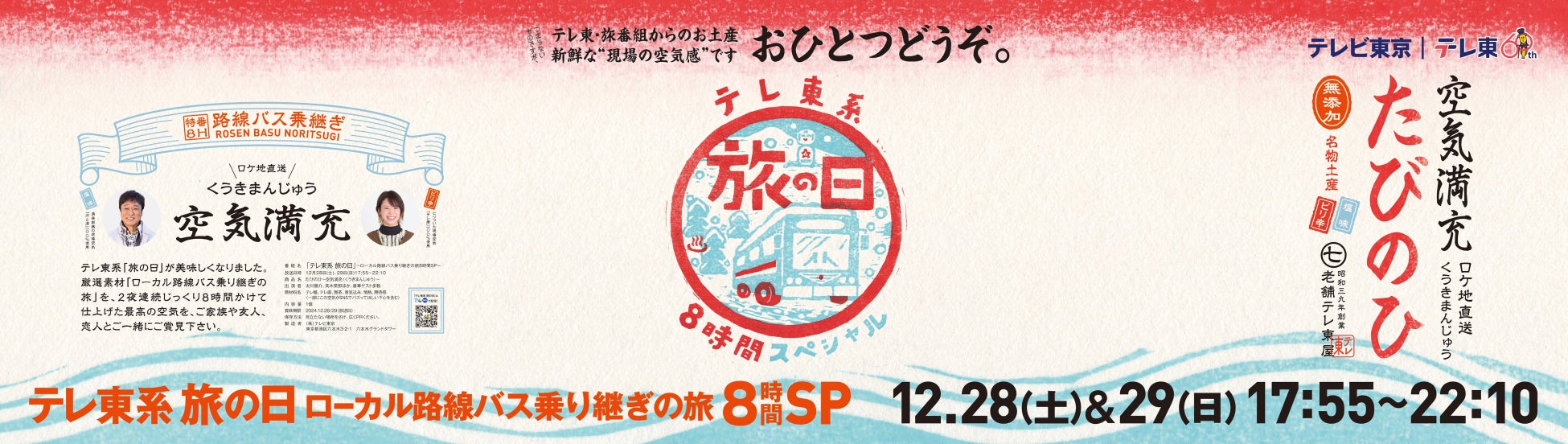 テレ東では12月28日(土)、29(日)夜5時55分から「テレ東系 旅の日~ローカル路線バス乗り継ぎの旅8時間SP~」を2夜連続トータル8時間にわたり放送します。