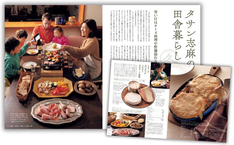 古民家のある静かな里山を舞台にした大好評のタサン志麻さんの季節連載、今号は寒い日にぴったりな心も体も温まる料理を教えていただきました。フランスで初めて目にしたときに衝撃を受けたというラクレットなどのチーズ料理や、田舎に引っ越してからぐっと身近になったというジビエ料理など、冬のごちそうと志麻さん一家の心豊かな暮らしをお届けします。