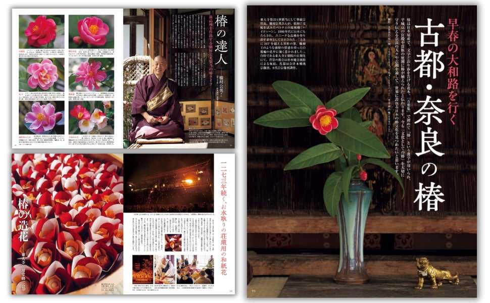 椿は日本原産。『万葉集』で初めて「椿」という漢字が用いられ、平城京の宮殿や貴族の庭園に椿が植えられたと伝わります。奈良には、今も「文化としての椿」を守り伝える人々がいます。20代から椿の栽培を続け「椿の達人」と称される、東大寺第二二四世別当・華厳宗管長の橋村公英さん。1273年続く東大寺二月堂の修二会(お水取り)で供えられる、荘厳用の椿の造花。修二会の造花を写した椿の和菓子が並ぶ、3軒の甘味処。「なら三名椿」と呼ばれる名木をはじめとする、9つの名所。早春の大和路を訪ね、世界に誇れる日本の椿文化を見つめます。