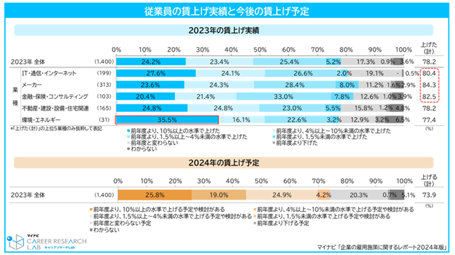 78.2%の企業が2023年に賃上げを実施。2024年に賃上げ予定の企業は73.9%で、持続的な賃上げ実現へ。7割以上が2024年度の従業員教育(リスキリング)費を上げる予定