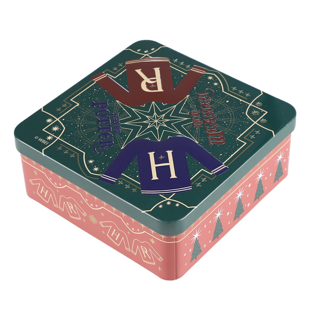 映画『ハリー・ポッターと賢者の石』で、ロンの母モリー・ウィーズリーがハリーとロンへ贈ったセーターをはじめ、作中に登場するさまざまなモチーフをクッキーにしたアソート缶です。冬を意識したかわいらしい見た目はもちろん、シナモンや紅茶など豊富なフレーバーはホリデーシーズンのティータイムにぴったり。