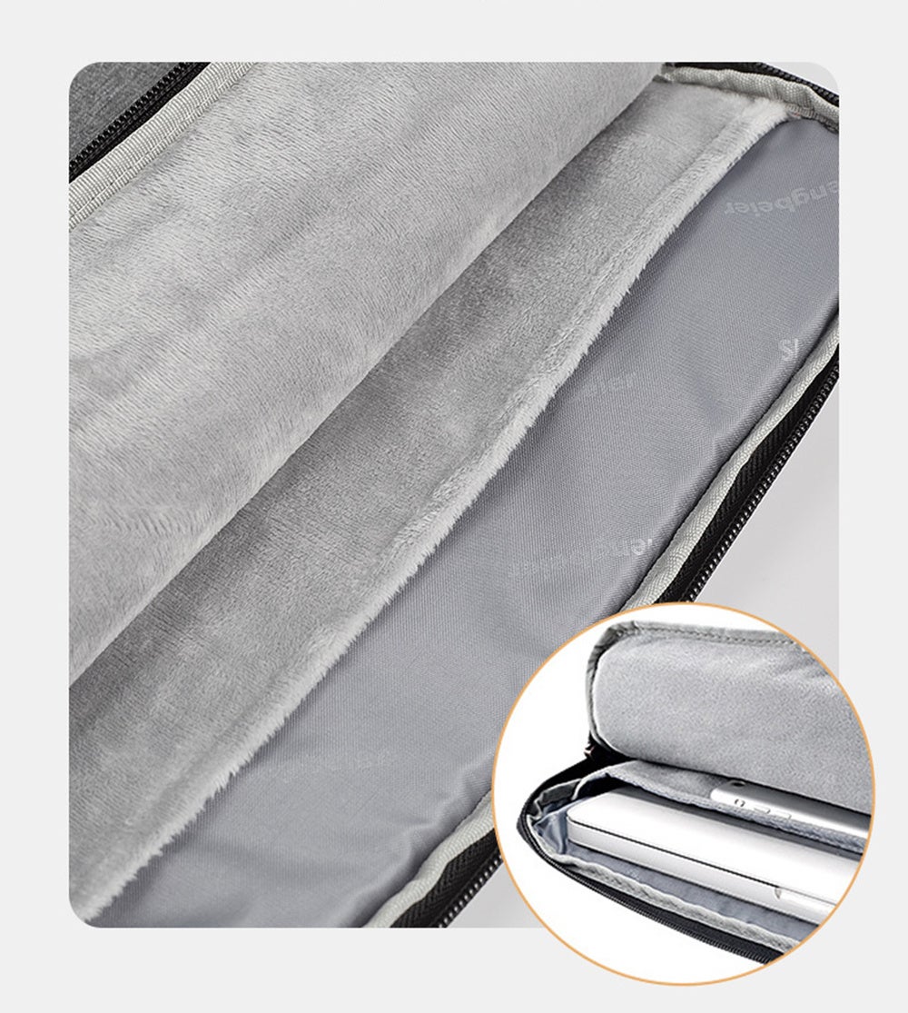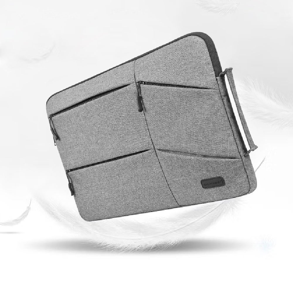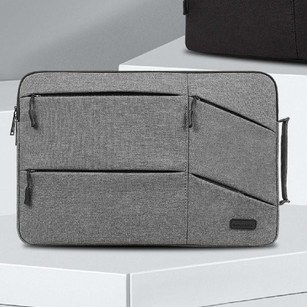 最大14インチのノートパソコンに対応し、電源ケーブルやマウスといった様々なPC用品を一つのバッグに収納することができ、柔らかい裏地と撥水性のある素材でデバイスを保護します。