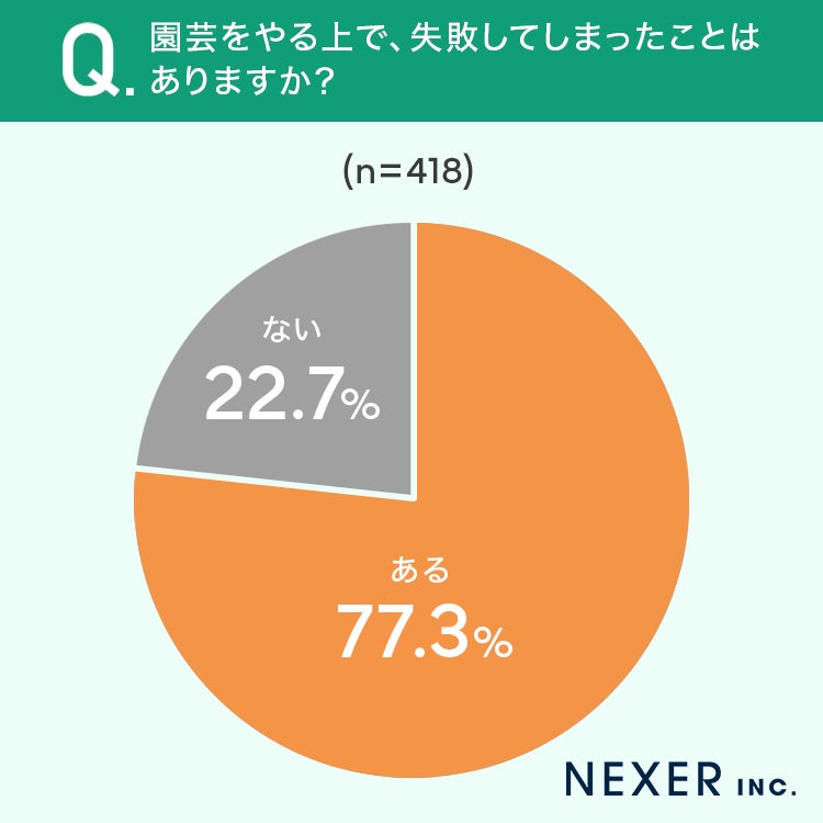 園芸経験者の8割近くが、これまでに「失敗したことがある」と回答しました。