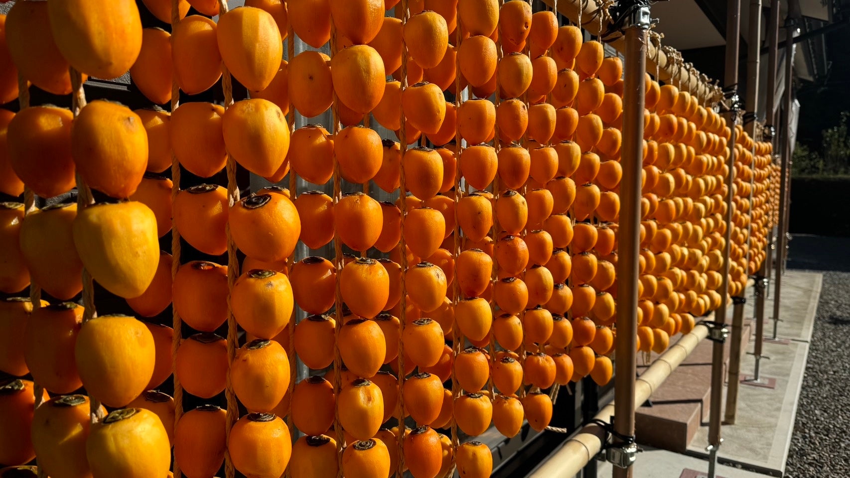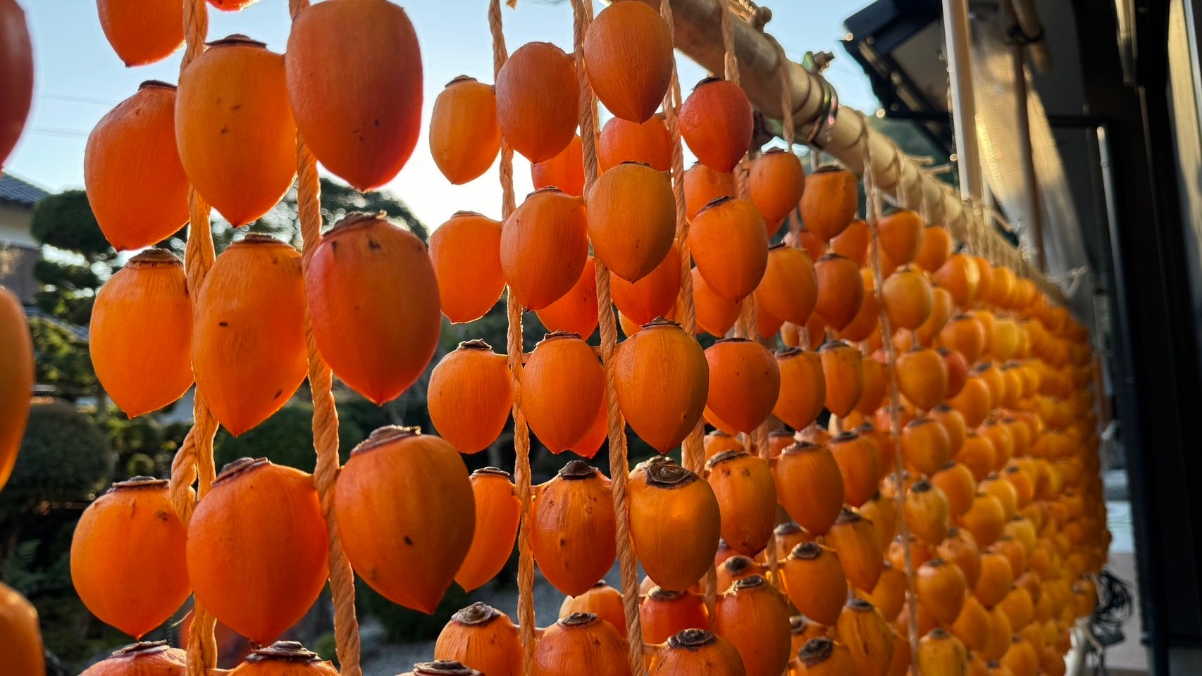 秋深まる11月、農家の軒先を彩る“橙色のカーテン”。旧伊自良村で100年続く伝統の干し柿。渋柿の皮をむき竹串に3つ挿したあと、藁で10段編むと言う伊自良地区特有の干し柿作りに密着。