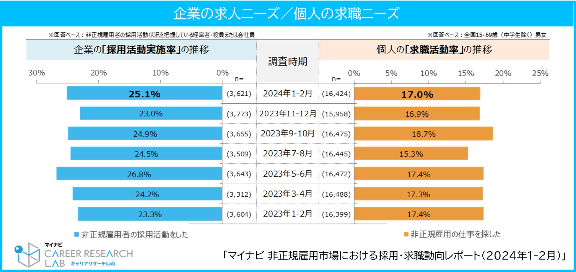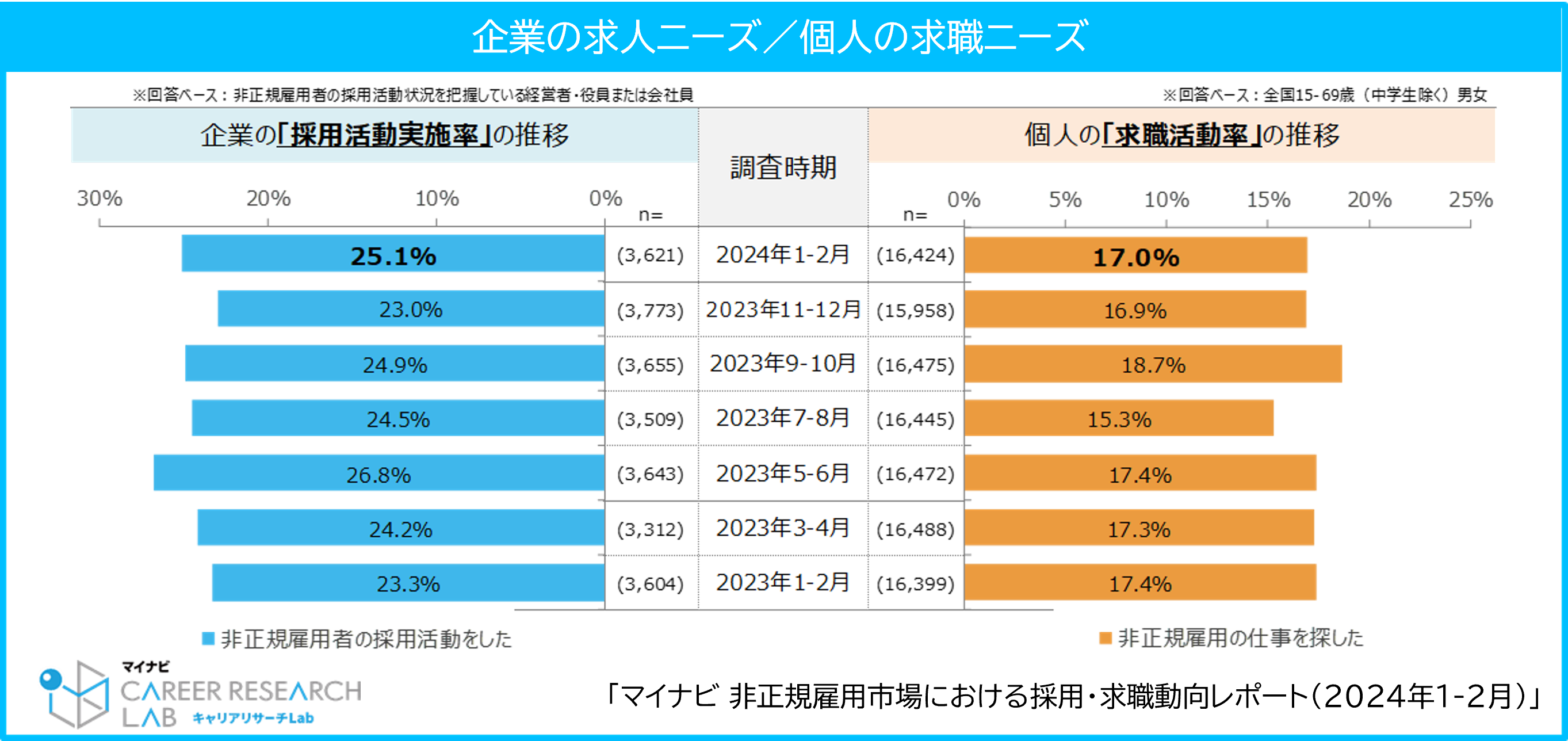 マイナビ、「非正規雇用市場における採用・求職動向レポート(2024年1-2月)」を発表