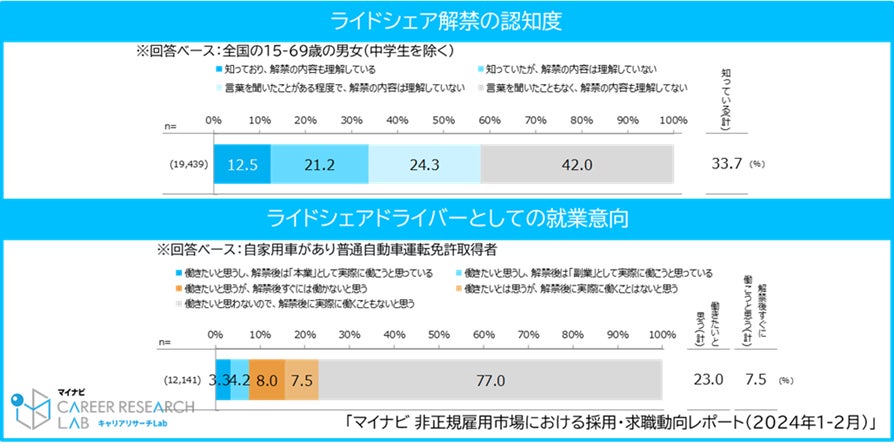 ◆2024年4月解禁のライドシェアの認知度は33.7%、就業意向がある割合は23.0%に留まる