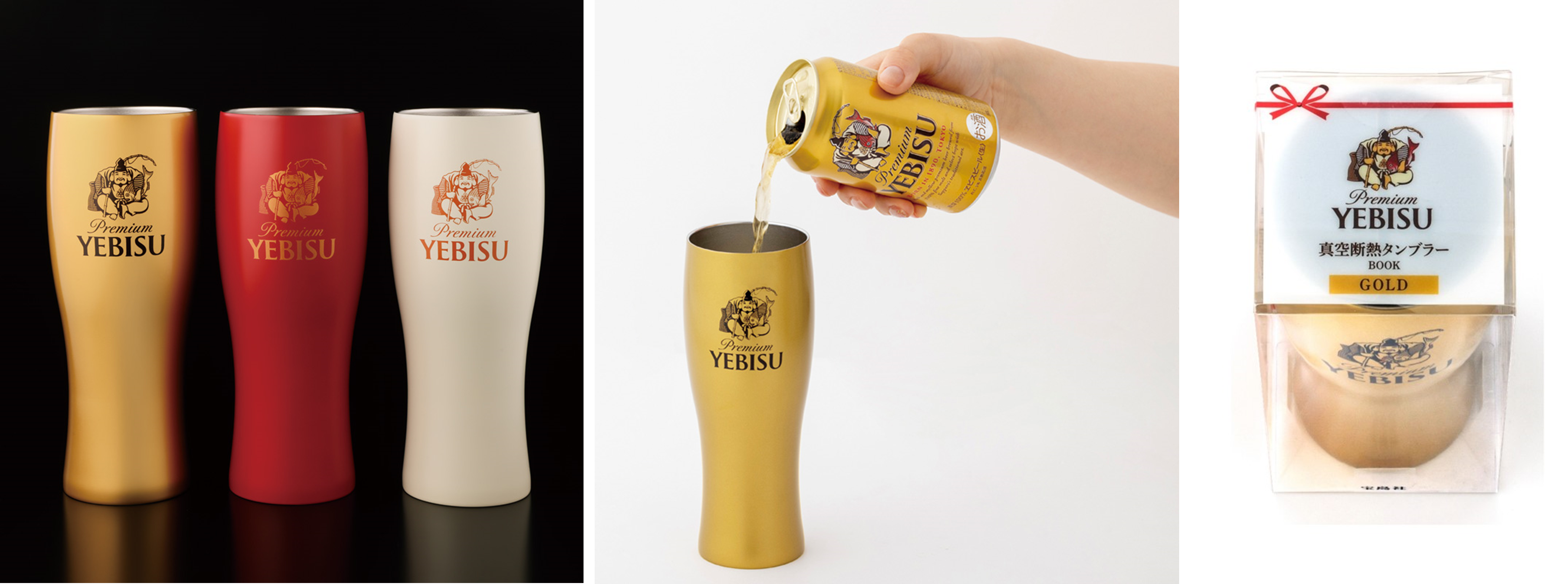 『ヱビス真空断熱タンブラーBOOK GOLD/RED/WHITE』