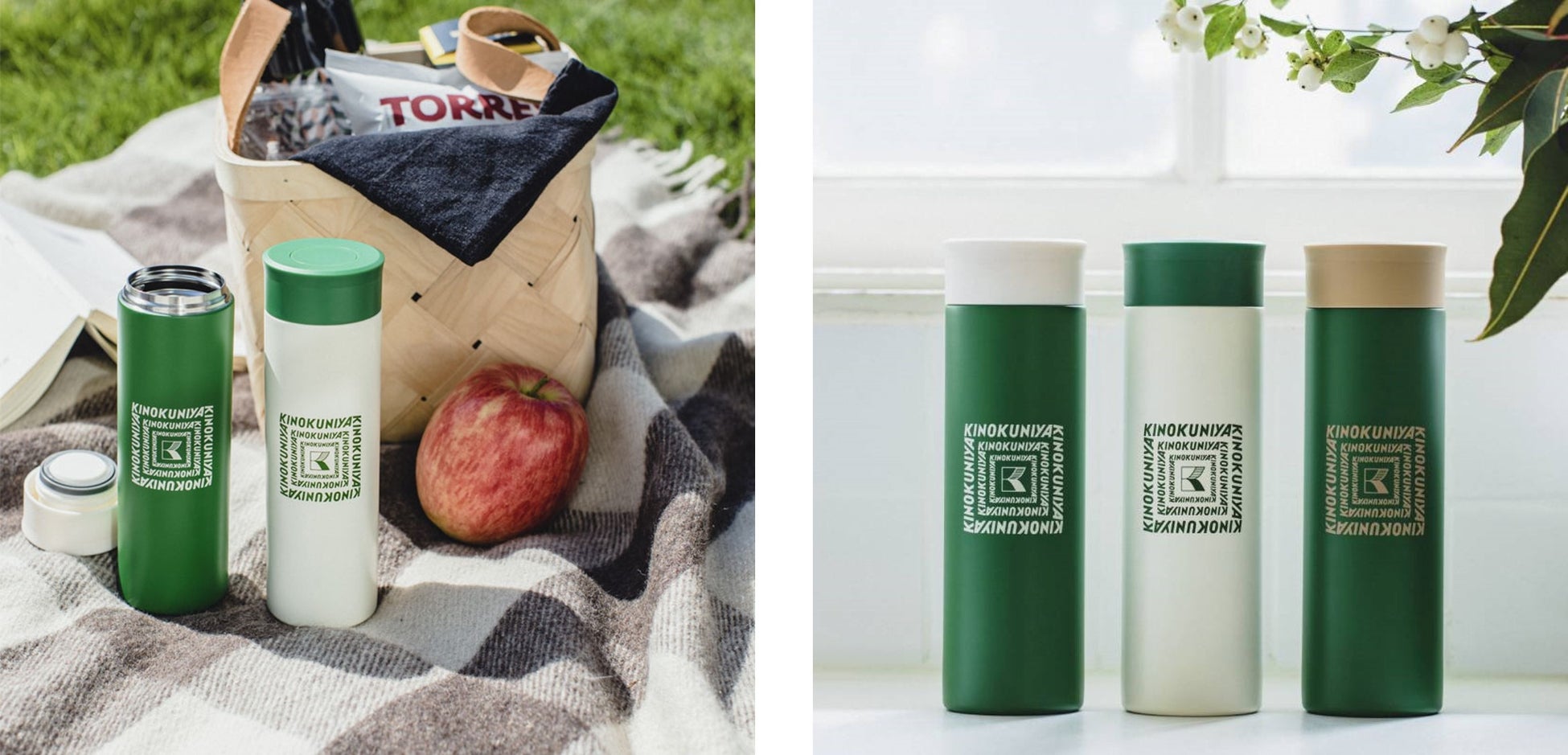 『KINOKUNIYA 真空断熱ステンレスボトルBOOK GREEN/IVORY ver.』
