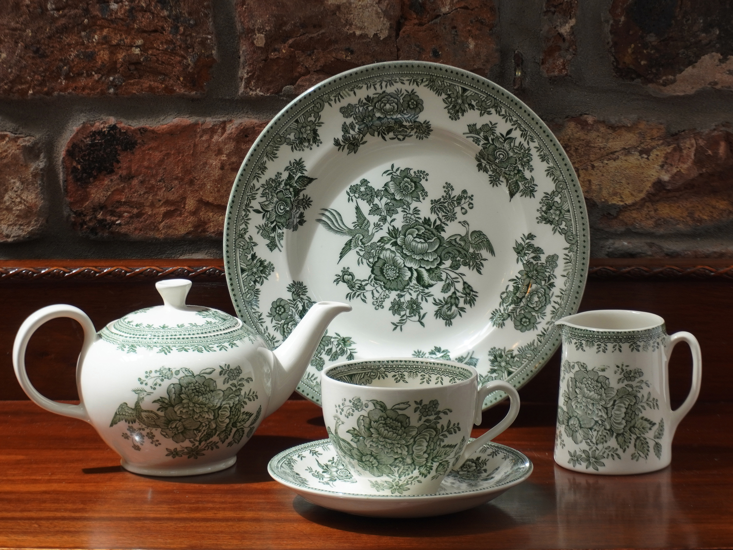 〈バーレイ〉グリーンアジアティックフェザンツ ティーポットS 13,310円 グリーンアジアティックフェザンツ プレート中 4,070円 グリーンアジアティックフェザンツ カップ&ソーサー5,610円 グリーンアジアティックフェザンツ タンカードジャグS 5,060円