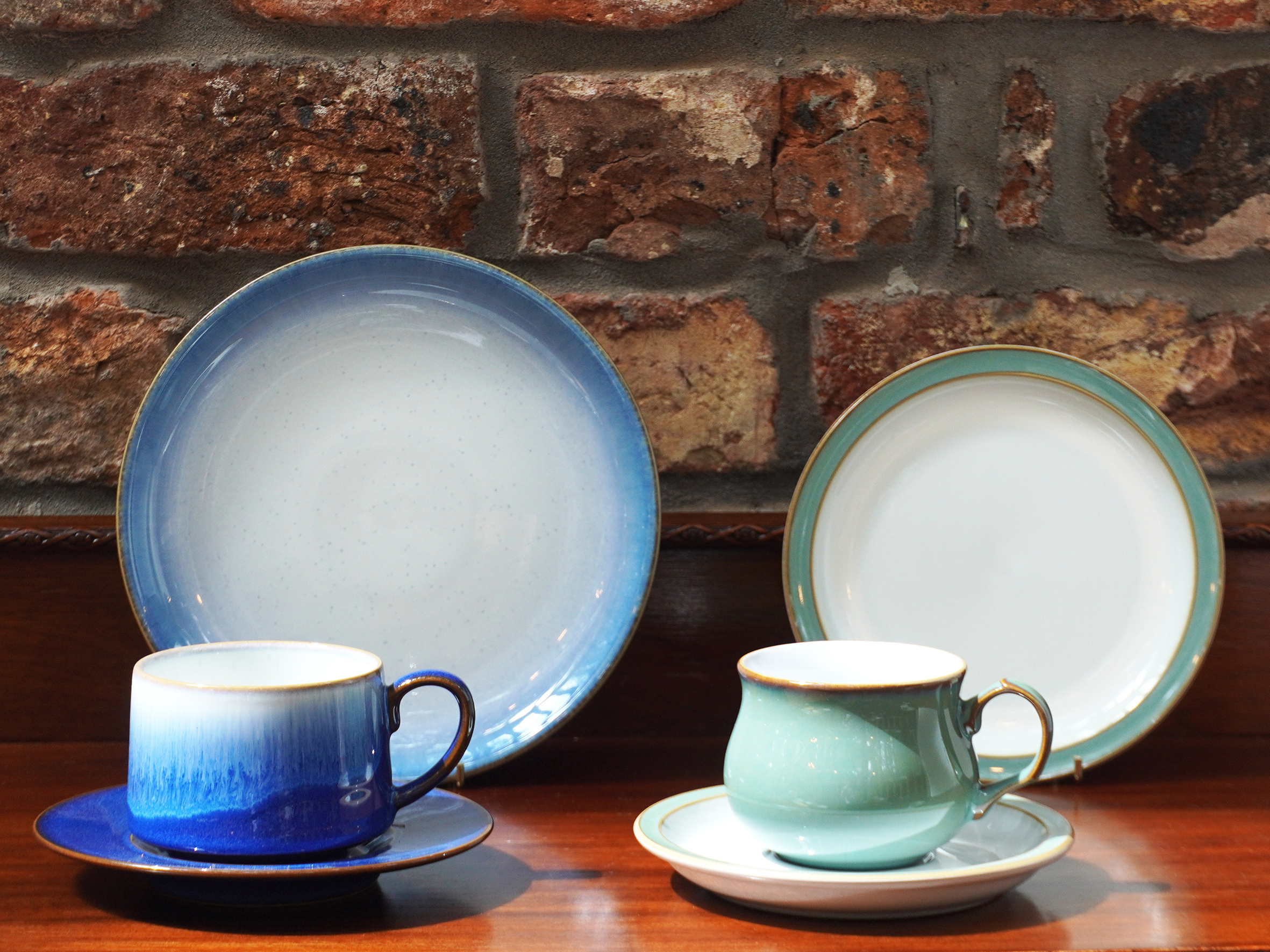 〈デンビー〉ブルーヘイズ カップ&ソーサー 5,610円 ブルーヘイズ ブレックファーストサイドプレート 2,860円 リージェンシーグリーン カップ&ソーサー 5,610円 リージェンシーグリーン ティープレート 3,410円