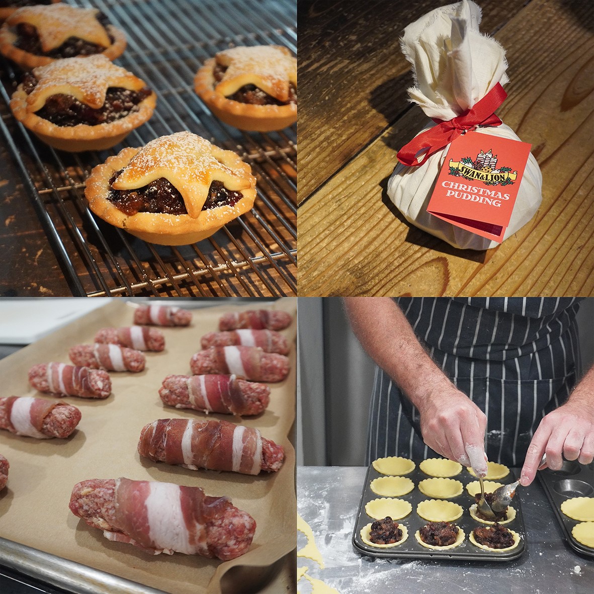 〈スワン&ライオン〉ミンスパイ(左上・右下)、クリスマスプディング(右上)、ピッグスインブランケッツ(左下)