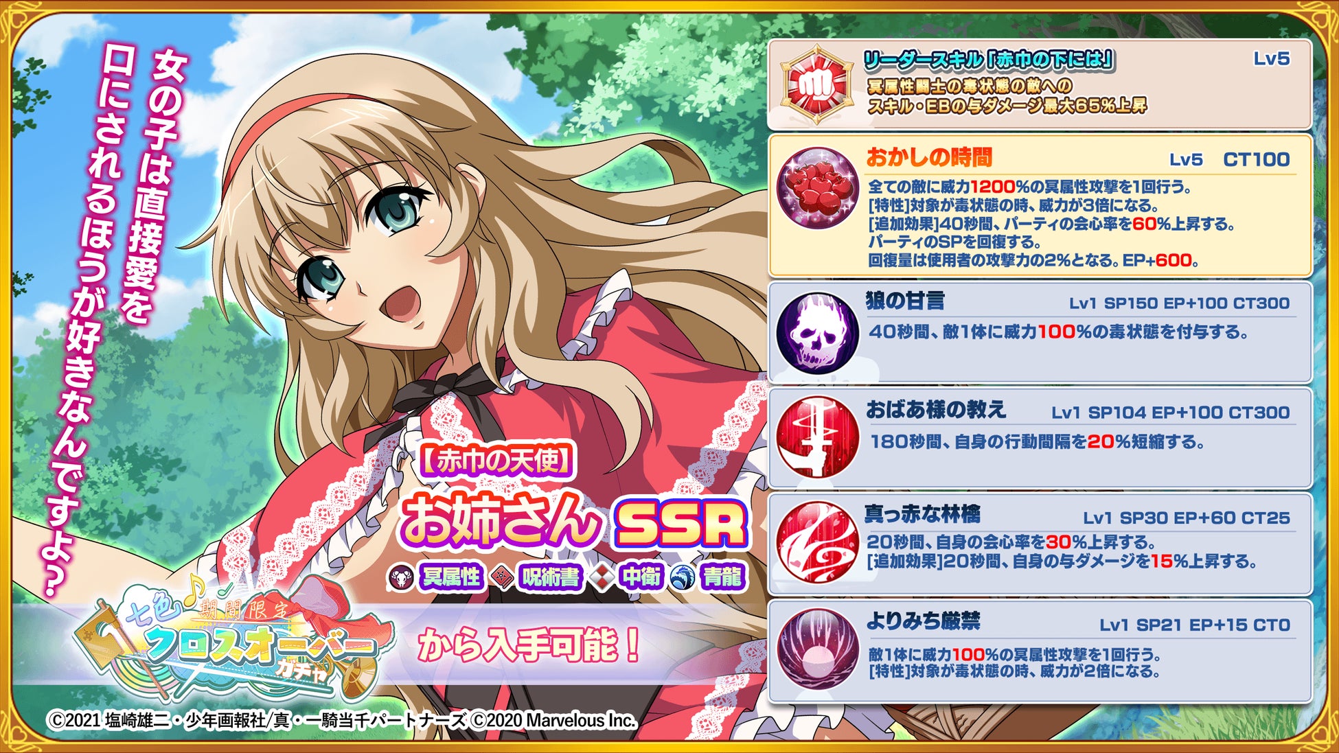 本日開始の「七色クロスオーバーガチャVol.1」では、新たに「【赤巾の天使】お姉さん」(CV: 堀江 由衣)が登場!