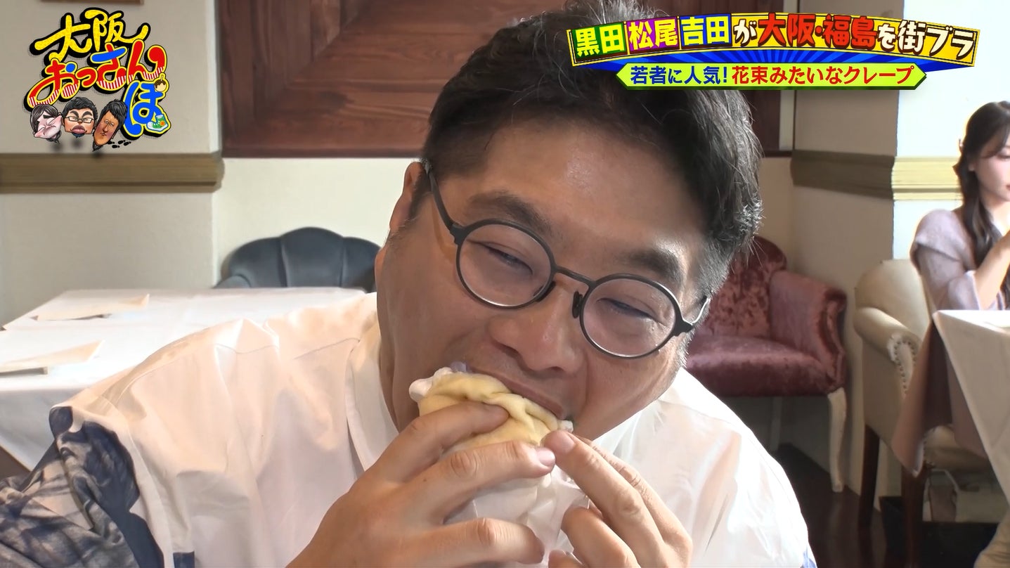 クレープを堪能する黒田や松尾に対し、吉田は愛用品の推し写真を撮影する!