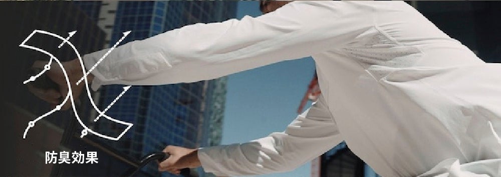 ⚫︎繊維に含まれたキシリトールの冷却効果と、脇下のベンチレータ、UPF50+の紫外線カットで暑い日も快適