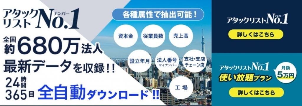2025年8月5日(火)、㈱ナビットでは大人気の「アタックリストNo.1」の支社・支店・工場・チェーン店の抽出方式が変更になり、更にご利用いただきやすくなりましたので、ご紹介します。