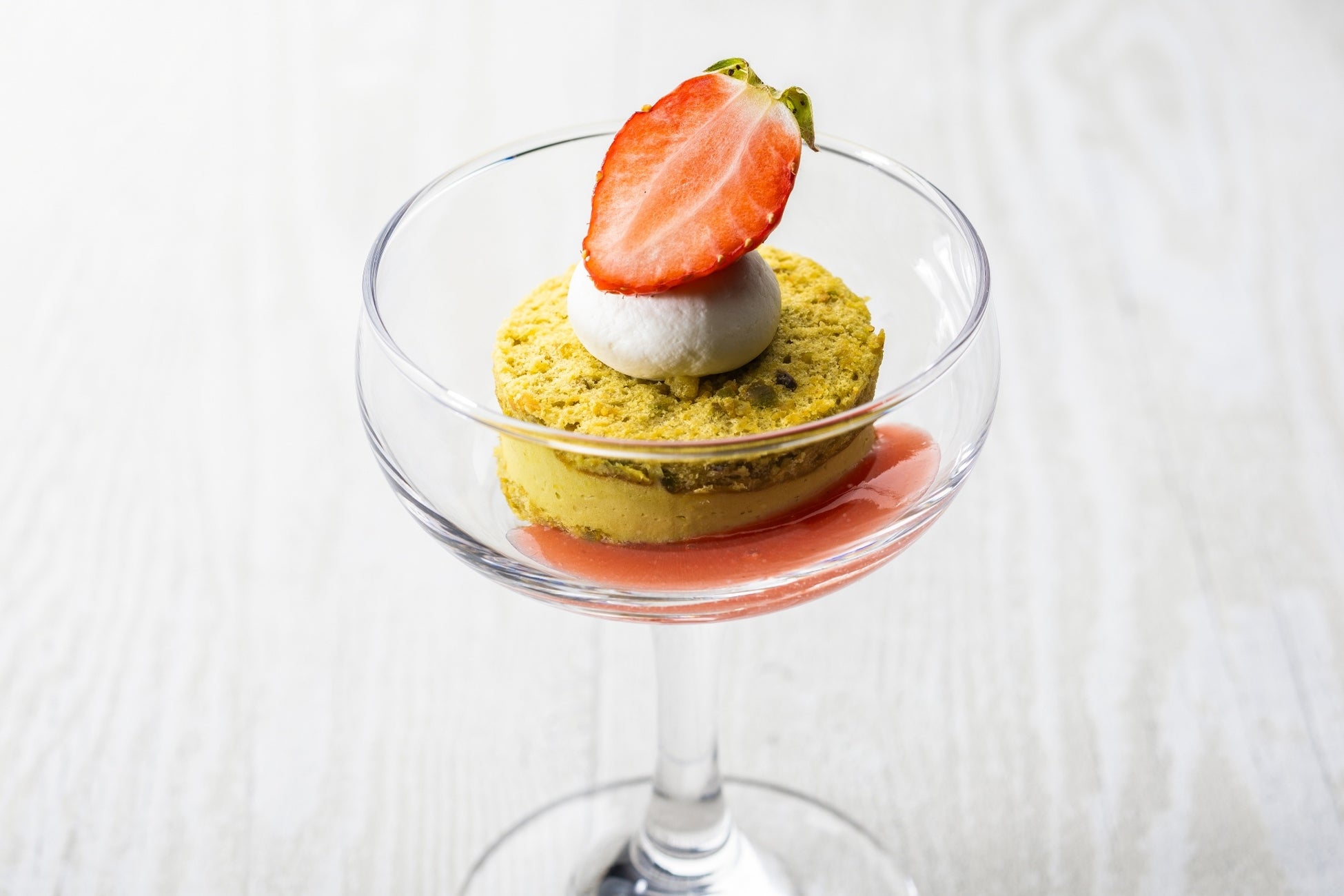 ビスキュイと呼ばれるアーモンドが練り込まれた少し堅めの生地に、濃厚なカスタードクリームと口どけ滑らかなバタークリームを贅沢にサンドしました。苺のシーズンのみに味わえるケーキで、フランスの春を告げるお菓子です。